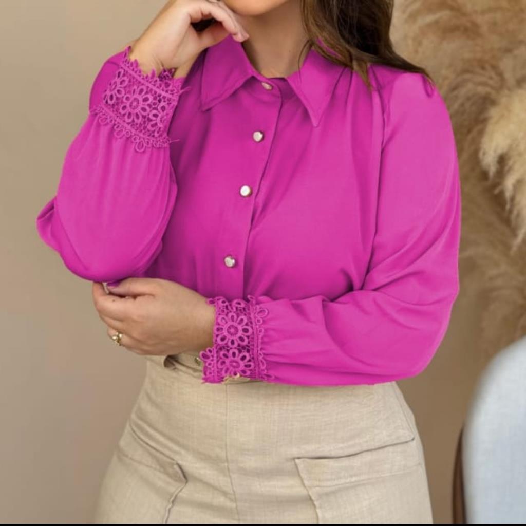 O colarinho clássico dá um toque formal, ideal para composições de trabalho, eventos ou ocasiões em que se deseja um visual mais arrumado.