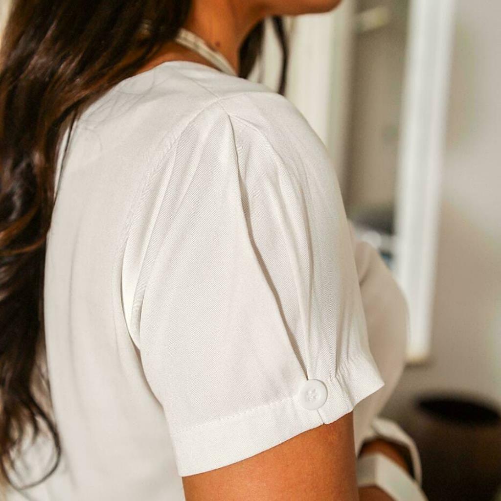 Com tecido leve e toque macio, ele proporciona um caimento fluido e agradável no corpo, ideal para dias mais quentes ou para compor looks casuais e sofisticados.