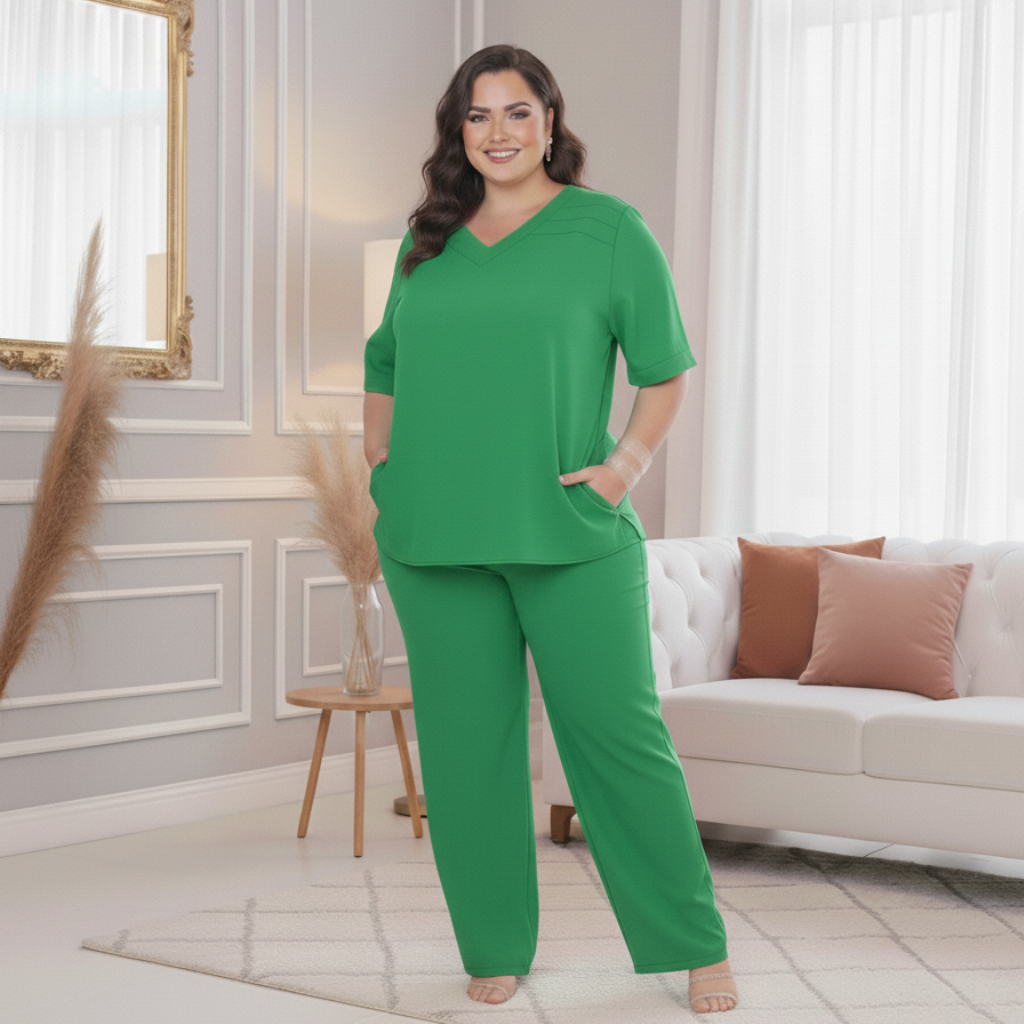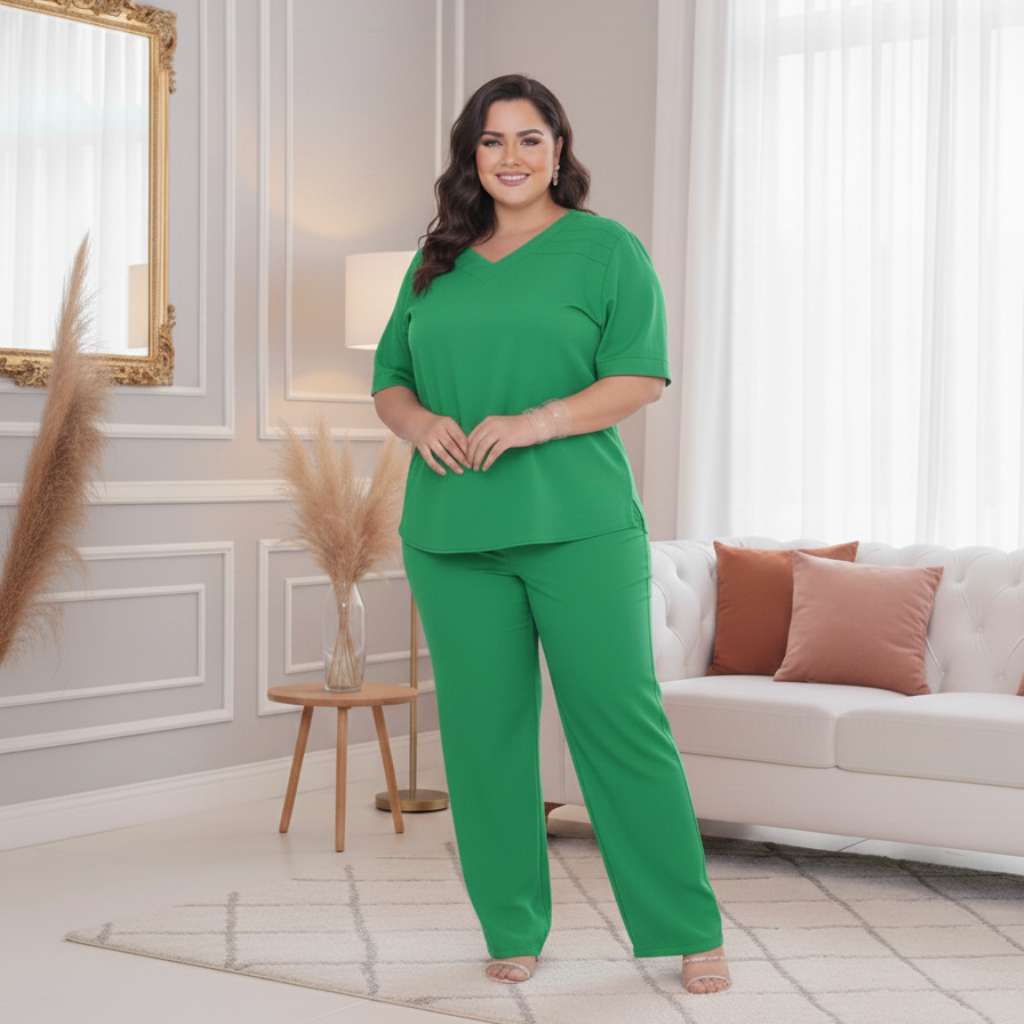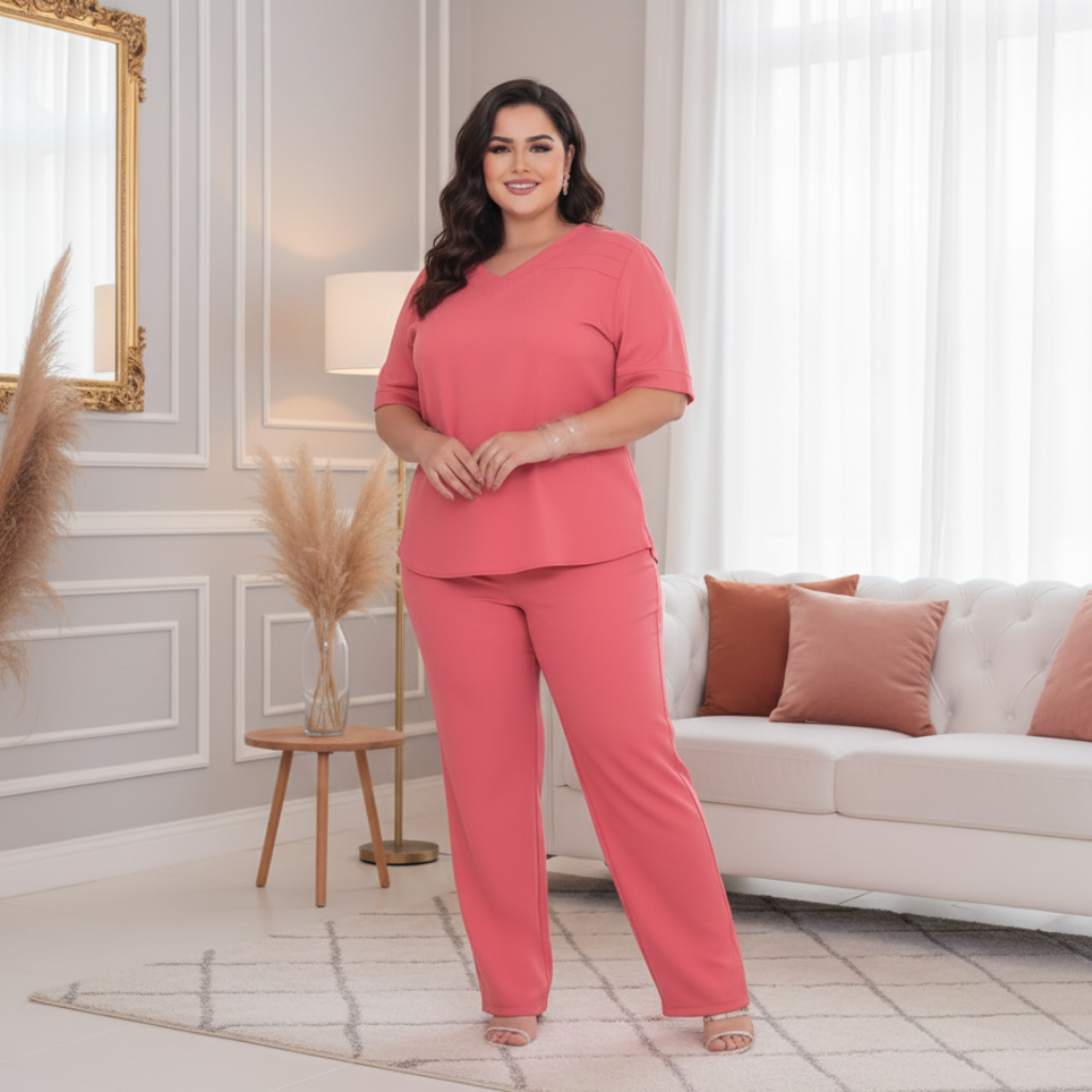 Elegante, confortável e perfeito para diversas ocasiões, este conjunto plus size, traz um visual moderno e sofisticado.