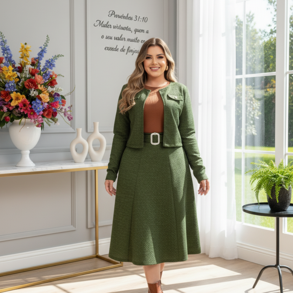 Descrição: Conjunto Veronica = Blazer + Saia + Cinto