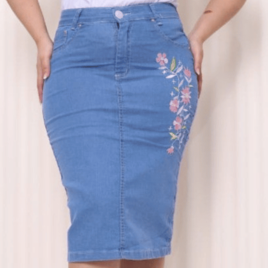 Saia Helena Bordada - Jeans
