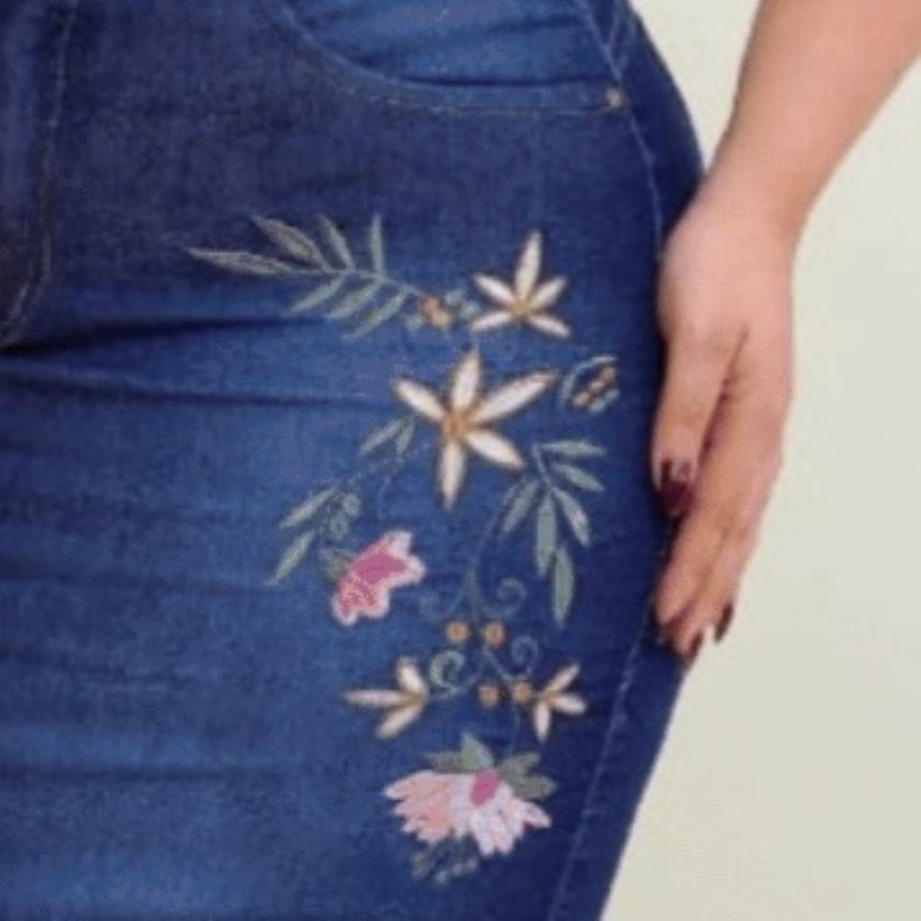 Destaque para os bordados florais delicados que valorizam a peça e traz um toque feminino ao jeans. Ideal para compor looks elegantes e discretos.