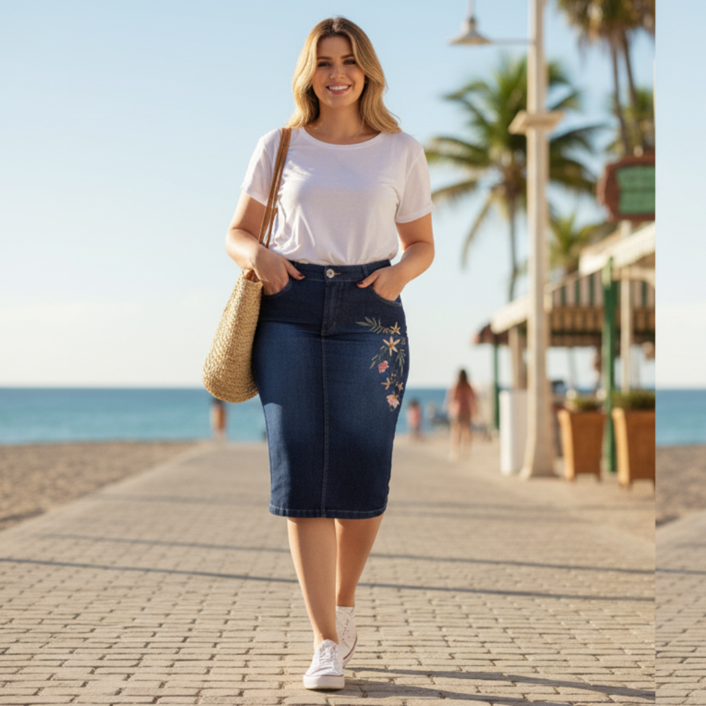 A Saia Natalia bordada, é modesta, moderna e versátil.