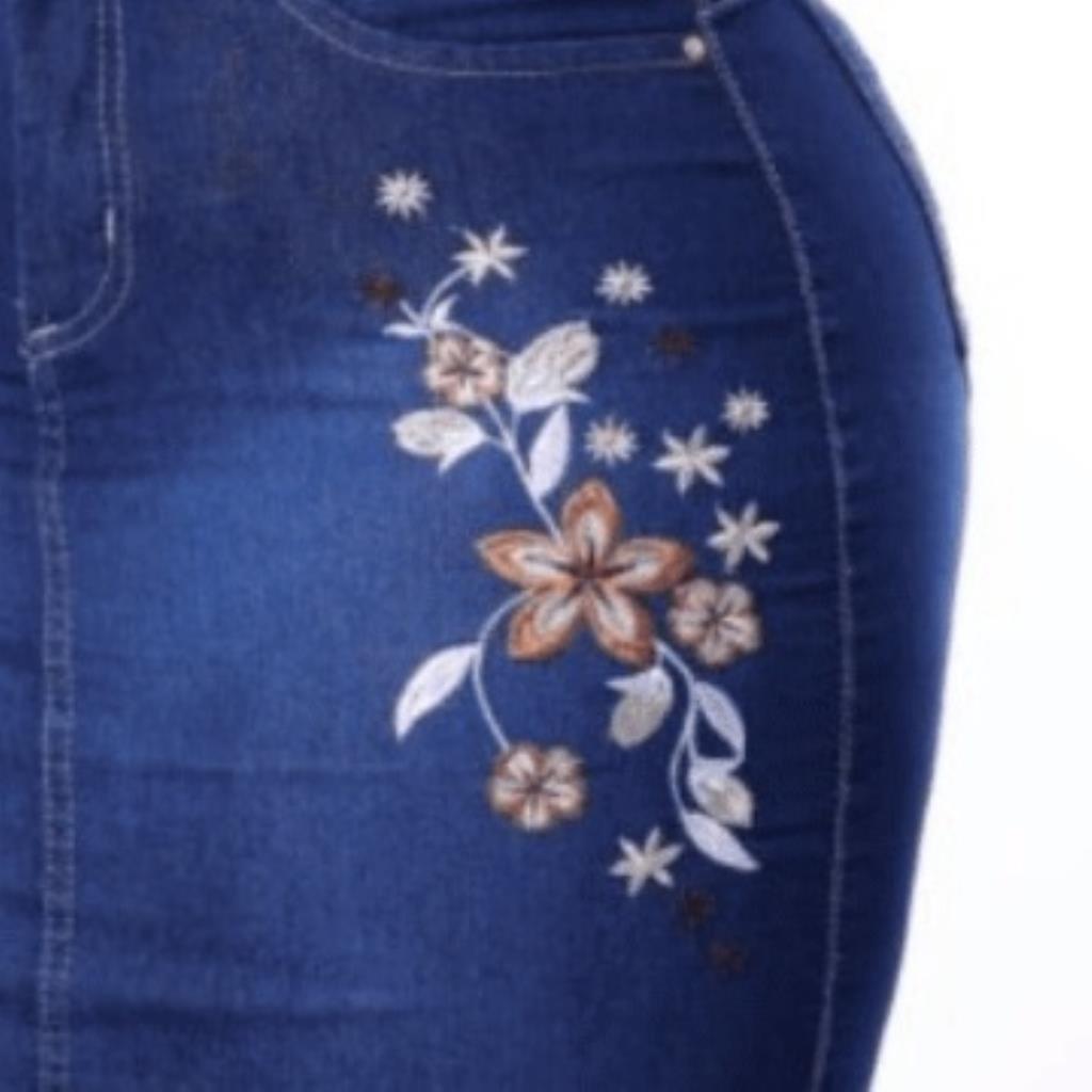 Saia Paloma Bordada - Jeans