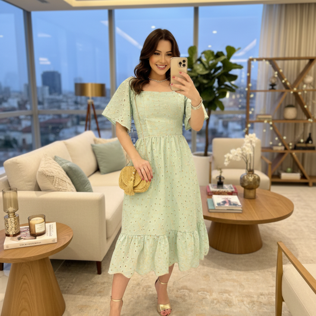 Vestido Ayla em Laise Bordado, delicado e elegante.
