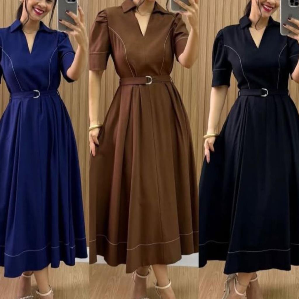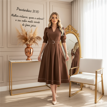 Seu caimento impecável e a saia rodada com movimento garantem charme em cada passo.