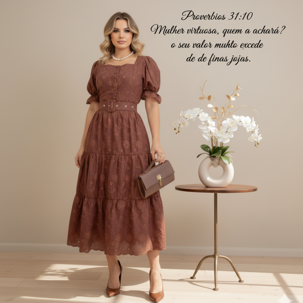 Com um caimento leve e cintura marcada por um charmoso cinto, ele traz aquela sensação de leveza que transforma qualquer momento em algo especial.
