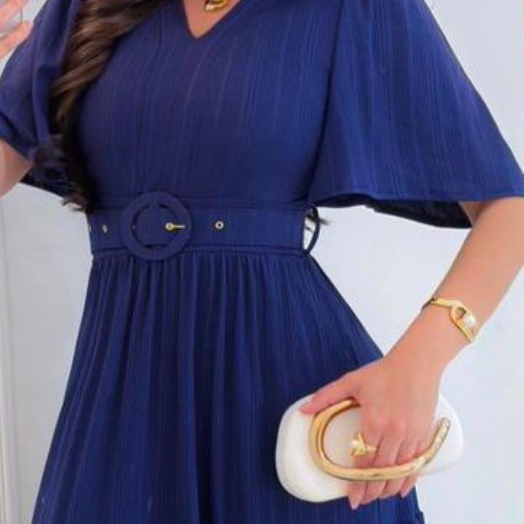 Com decote em V e mangas amplas estilo borboleta, o vestido transmite delicadeza e feminilidade.